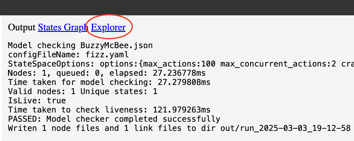 While you can use FizzBee to model your system, explore and simulate various scenarios, and look at how the state variables change, it would be nicer to add some assertions to the state. This is called model checking.